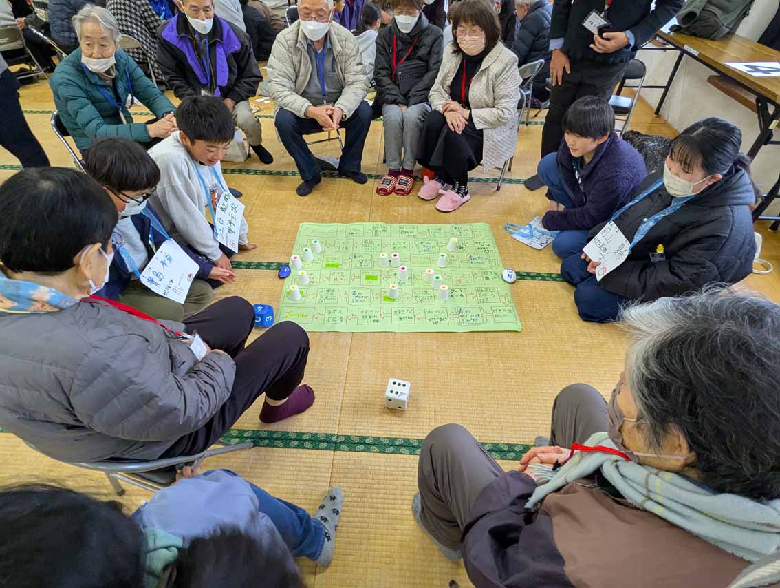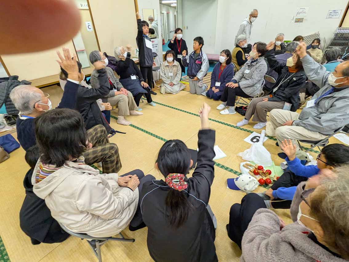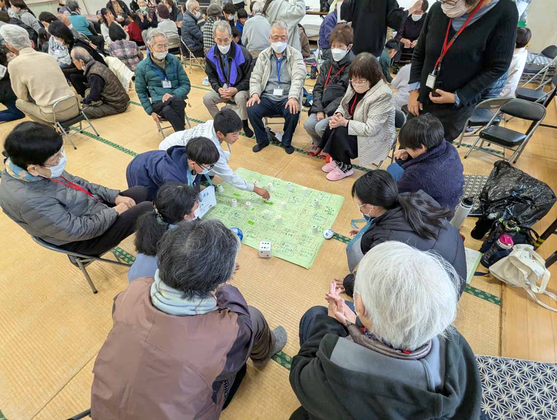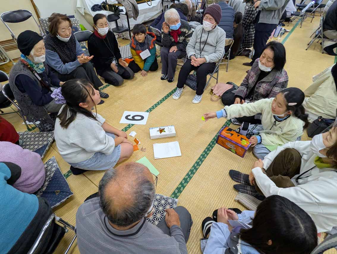 12月17日に千鳥苑で第2回目の交流会を開きました。前回同様160名ほどの参加者が大広間に集まりました。子ども達からのクイズで始まりグループに分かれて企画した内容のお披露目です。どのグループからも笑い声が飛び交い楽しい時間を過ごしました。最後に地域の方が成長した子ども達に感謝の気持ちと最上級生を前にして心得を優しい言葉で告げられました。とても温かい交流会でした。